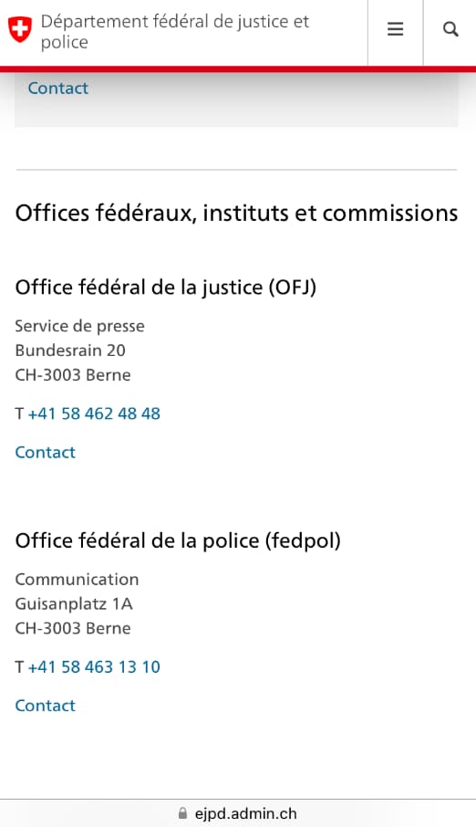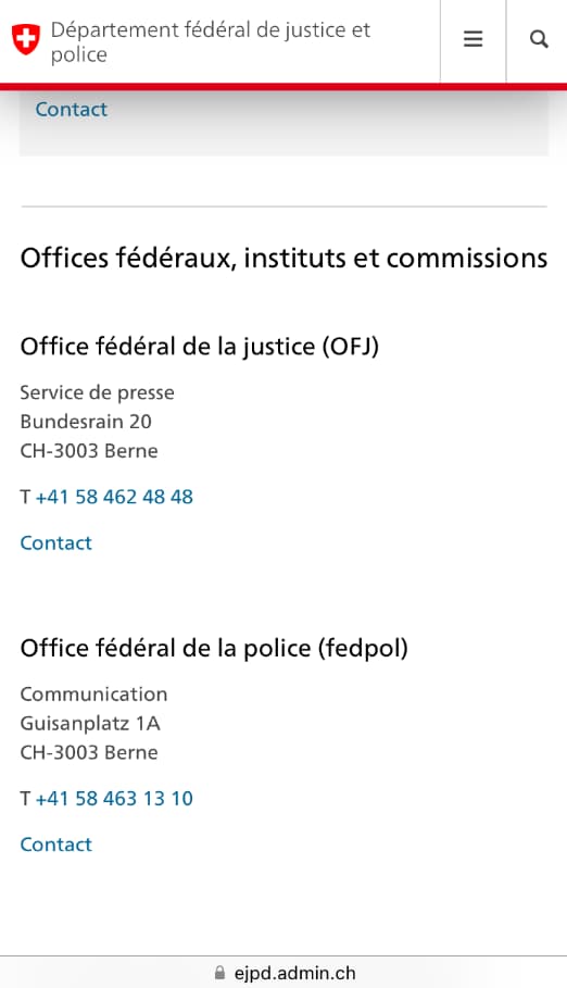 Note : Les citoyens étant appelés à s'adresser en premier lieu à la police et à la justice de leur canton, la police fédérale (fedpol) et l'office fédéral de la justice (OFJ) intègrent le code 9 dans leurs canaux de communication.